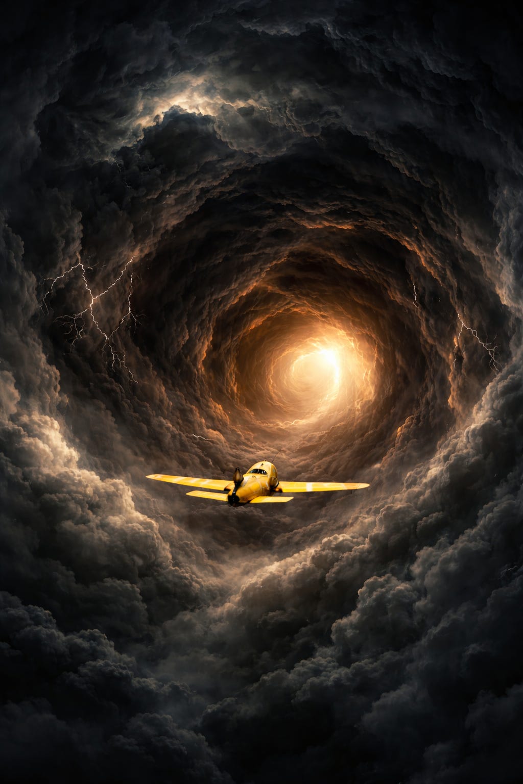 Wind whistled past the cockpit windows as Jessie wrestled with the controls. The plane continued to lose altitude while picking up a dangerous amount speed. He tried directing the plane into an “S” curve to get out of the wind shear, but instead the plane began to fly in a wide corkscrew pattern, losing more altitude as it went.
